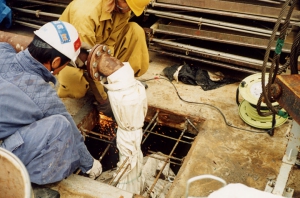 湧水処理および減圧処理を目的として設置したディープウェルの場合には、多量の湧水が発生しますので、水中ポンプ排水を併用したり、水中コンクリートを打設したりすることがあります。